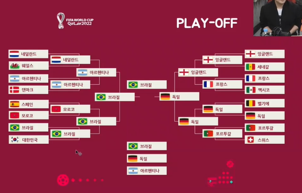 박지성이 침착맨 방송에 배성재 아나운서와 함께 출연해 카타르 월드컵을 예측하며 오갔던 대화가 인상 깊었는데, 박지성이 예측한 16강 진출팀은 다음과 같다.